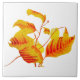 This design captures the charm of New England (in USA) in the Fall season, through a painting titled 'Dogwood Leaves'. It is bursting with the vibrancy of warm colours that range in shades of yellow, orange and red. This tile will bring the warmth of these colours to your walls and home decor. Great for kitchen or bathroom walls. Observe the delicate venation and savour the warmth of Fall colours. Cheers to nature's grand finale of colours!