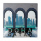 Souvenirs showcasing an iconic skyline view of Doha, Qatar.