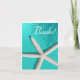 La carte de remerciement de plage tropicale présente une jolie étoile de mer blanche sur un fond de sarcelle foncée. Disponible en 6 couleurs : sarcelle, or de coucher de soleil, fuchsia, vert menthe, corail et brume océanique. Cliquez sur le bouton PERSONNALISER pour ajouter votre propre texte. Produits assortis disponibles. VOIR LA COLLECTION ENTIÈRE SUR : glamprettyweddings.com. Pour les questions ou les demandes personnalisées, envoyez un e-mail à : cheryl@glamprettyweddings.com/contact. Conception originale "Doigts d'étoile de mer" par Cheryl Daniels © 2014.