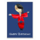 anniversaire japonais ! Photo d'une illustration originale de Zoe Tuong, une poupée japonaise mignonne habillée en costume de kimono rouge traditionnel. Ce style d'art asiatique mignon influencé du Japon illustration est coloré et la couleur arrière - plan peut être changée selon vos goûts.