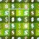 Fabric with seamless green American dollar sign money pattern