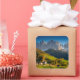 Photo sticker of the village St. Magdalena with its church in the Villnoesstal in South Tyrol, Italy, during autumn season with the Geisler Dolomites mountains in the background.