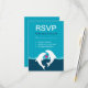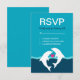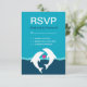 This colourful, modern, blue wedding RSVP card features two playful dolphins in the ocean waves. Perfect for a destination beach wedding by the sea or a cruise ship wedding. Easily personalize with your wedding details.