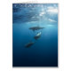 Stunning underwater photographiy of a dolphin family playing beneath the surface.