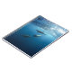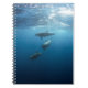 Stunning underwater photography of a dolphin family playing beneath the surface.