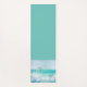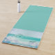 Yoga mat features watercolor illustration of two dolphins splashing in ocean waves with aqua background