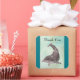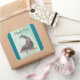 Thank you sticker with a friendly playful dolphin swimming around in pale green waters with bubbles and splashes all around. Aquarium birthdays and other aquatic themed events.