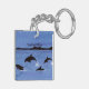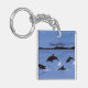 A watercolor painting of a group dolphins adorns this customizable keychain!