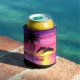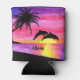 A dolphin couple frolicing in the surf decorate this tropical can coozie which can be personalized with any name, names or saying!