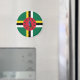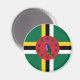 The Dominica flag is a flag with a circular red emblem with Sisserou Parrot and 10 stars. The used colours in the flag are red, green, yellow, white, black, brown, purple. The proportion of the Dominica flag is 1:2. The Flag of Dominica was adopted in 1990. The first use of the current flag design was in 1978. The last change to the current Dominica flag design was in 1990.