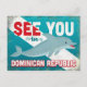See You In Dominican Republic Caribbean retro dolphin travel design. Charming turquoise vintage style with a cheerful swimming dolphin.