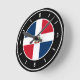 Dominican Republic Flag Elegant Round Clock with the Dominican Republic flag positioned in the middle and lovely white clock numbers on the clock edge. Delightful black background with the white oval elements finalize the design putting emphasis on the elegance. Beautiful combination of black and white with the skilful integration of the national flag colours make this clock the perfect gift and the great show piece on the wall. © CountriesOfTheWorld