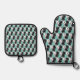Dominoes Design Oven Mitt and Pot Holder Set with customizable background colour to match your kitchen decor.
