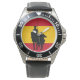 My husband loves the watch, he likes the dial, the graphics, the band, and it keeps perfect time.