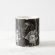 Don Quixote Wraparound Mug: The First Step is to Dream. Woodcut style digital image in mostly black and white.