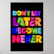 Don’t Let Later Become Never Motivational Quote Poster
