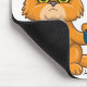 This cute mouse pad includes an angry cat holding a mouse with the saying “Don’t Touch My Mouse” Colour scheme is orange and teal.