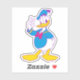 Brighten up your wardrobe with this electric and cheerful Donald Duck illustration! Featuring a classic full-body pose with a friendly peace sign, this design gets a stylish update with a vibrant, non-traditional colour palette. The combination of bright cyan, magenta, and sunny yellow gives this artwork a fresh, "neon-pop" aesthetic that stands out from the crowd. The clean, purple-tinted linework and bold blocks of colour create a high-contrast look that feels both nostalgic and totally current. It’s an optimistic, fun-loving graphic that’s perfect for anyone who wants to share a little peace and a lot of personality.