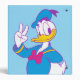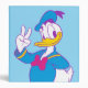 Brighten up your wardrobe with this electric and cheerful Donald Duck illustration! Featuring a classic full-body pose with a friendly peace sign, this design gets a stylish update with a vibrant, non-traditional color palette. The combination of bright cyan, magenta, and sunny yellow gives this artwork a fresh, "neon-pop" aesthetic that stands out from the crowd. The clean, purple-tinted linework and bold blocks of color create a high-contrast look that feels both nostalgic and totally current. It’s an optimistic, fun-loving graphic that’s perfect for anyone who wants to share a little peace and a lot of personality.