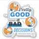Embrace your inner troublemaker with this witty and high-energy statement design! Featuring a mix of bold, modern typography and three expressive Donald Duck character cameos, this graphic perfectly captures the chaotic charm of a beloved icon. With the hilarious statement "Pretty Good at Bad Decisions," it’s a brilliant nod to a legacy of legendary temper tantrums and comical mishaps. The layout uses a clean, editorial style with high-contrast white and black lettering against a vibrant royal blue background. Each orange-circle inset showcases a different classic expression—from a peace sign to a full-blown frustrated shout—making it the ultimate "mood" for anyone who doesn't take themselves too seriously.
