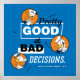 Embrace your inner troublemaker with this witty and high-energy statement design! Featuring a mix of bold, modern typography and three expressive Donald Duck character cameos, this graphic perfectly captures the chaotic charm of a beloved icon. With the hilarious statement "Pretty Good at Bad Decisions," it’s a brilliant nod to a legacy of legendary temper tantrums and comical mishaps. The layout uses a clean, editorial style with high-contrast white and black lettering against a vibrant royal blue background. Each orange-circle inset showcases a different classic expression—from a peace sign to a full-blown frustrated shout—making it the ultimate "mood" for anyone who doesn't take themselves too seriously.