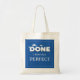 This design features a popular business concept message, DONE is better than Perfect in bold text with lighter than air clouds. Architectural blueprint drafting style with white grid on blue background.