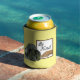 You can change the background colour and change the text on this can insulator sleeve. The image is derived from my original acrylic painting, Donkey Eating an Apple.