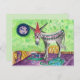 This is a Donkey eating a birthday cake. Donkeys roam free where I spend 1/2 the year on St.John,Virgin Islands. For me Donkeys are jokers, they are funny animals, so I put a mixed up clock on the wall. Donkeys are my favourite subject to paint. See my other art on my website www.kissedbyfirecreations.com.