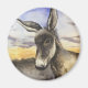 Donkey on a round magnet holds special papers with charm.