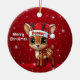 Donner! Celebrate the holiday season with this festive round ceramic red ornament featuring an endearing woodland forest animal cartoon graphic of a cute baby reindeer wearing a Santa hat, and Merry Christmas written in white. Perfect deer with antlers for decorating your tree or as a thoughtful gift, this whimsical doe decor makes a cherished keepsake for years to come. Customize by changing the text, the font, the font color, or remove the text. You can even transfer this design onto other products. Enjoy this design your way! Check out ForestBabies Xmas Deer Collection for matching decorations. 🎄🦌