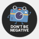 Don't Be Negative Funny Camera Pun Dark BG Classic Round Sticker