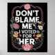 Dont Blame Me I Voted For Her Anti Trump I Voted F Poster