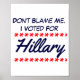 Dont Blame Me I Voted For Hillary Poster