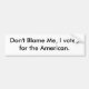 Don't Blame Me, I voted for the American. Bumper Sticker