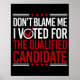 Don't Blame Me I Voted For The Qualified Candidate Poster