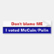 Don't blame ME, I voted McCain/Palin Bumper Sticker