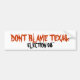 DONT BLAME TEXAS!, ELECTION 08" BUMPER STICKER