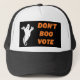 Halloween is right before election time in November. Wear this hat to remind people to vote. Vote to have your voice heard. Instead of booing your official let them know by voting. This was inspired by President Barack Obama on August 22, 2012 in Las Vegas who had a message for the people while campaigning for his 2nd term: "Don't boo. Vote."