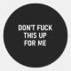 Don't For This Up For Me, Funny, Sarcastic, Joke, Classic Round Sticker