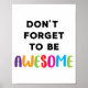 Don't Forget To Be Awesome Today awesome poster sign and more products for people who like inspirational and motivational life quotes. The perfect gift for kids' room decor, playroom, or office sign.