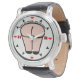 Hee! Hee! This funny watchface pictures a human derrierre to illustrate the caption in an arc above it reminding us "Don't Get Behind - Stay On TIme". Bright Red kiss marks 12, 3, 6 & 9 o'clock. Black arrowheads mark the remaining hours. BONUS 2 custom text fields for your initials.