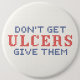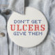 Don't get ulcers, give them! Fun advice stitched in retro cross stitch embroidery needlework on white Aida cloth background.