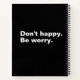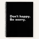 Don't happy. Be worry. funny saying sarcastic text Notebook