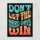 Colourful, groovy, wavy retro style "Don't let the hard days win" motivational text design with blue, orange, turquiose and pink colours for everybody who likes inspirational quotes. It is easy to change the background colour and personalize it.