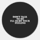 Don't Talk To Me I'll Hurt Your Feelings Funny Say Classic Round Sticker