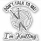 Don't Talk To Me! I'm Knitting. This funny knitting accessory would be a great knitting lover gift idea for the knitter in your life. Perfect for anyone who loves to knit and loves yarn! If knitting is your hobby, you're a yarn lover and you love crafting with knitting needles and balls of yarn, then this knitter accessory is for you!