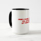 Don't Talk To Me Til After My Coffee . Coffee Mug. This cup has the saying written in Red iin Bold Text on a white mug. Black Rim and handle. Customize text and colours if desired. Funny mugs.
