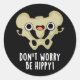 Don't Worry Be Hippy Funny Bone Pun Dark BG Classic Round Sticker