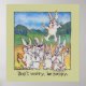 Personalize these joyful jumpers with your own text. You can also customize and change the beige background, and grey border. Change the font, size, colours, put your own name in "I'm Jason, I feel hoppy"... etc as a great kids room decoration wall print. You can make a special gift by matting and framing, and/or printing on fine art papers and canvas for a gallery style art work. If you have a vegetarian friend you can title it: "Fun in Carrot Cake Meadow" These 7 bunny rabbits are out in the country making a video and practicing for their new vegetarian cooking show on the food channel. They are trying a new recipe for carrot fondu. Last week was brocolli jello.