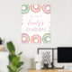 Une affiche d'accueil sur le thème des beignes pour vos petits "Donut Grow Up" 1er anniversaire. Avec nos beignets roses, violets et aqua avec des détails de parties scintillant en faux or. Objets correspondants disponibles incluant invitation, carte de remerciements, étiquettes de faveur, serviettes et plus encore.